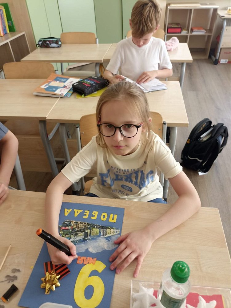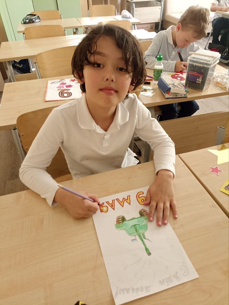 В преддверии великого праздника — Дня Победы — ученики 2 "А" класса вместе с воспитателем Ждановой Галиной Анатольевной с любовью и вдохновением изготовили праздничные открытки. Для оформления своих работ ребята использовали различные художественные материалы: цветные карандаши, фломастеры, пастель. Особое внимание они уделили символам Победы — ярким звёздам, весенним цветам и Георгиевским лентам, которые украсили каждую открытку и наполнили её особым смыслом.